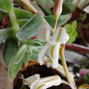 さて、私は誰でしょう? 後ろの緑のタニク君とは関係ありません 1センチほどのクルンとした花が可愛くて💟