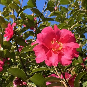 真っ赤なツバキ❤️ そして、青い空💙 マンション近くの川沿いには、いま赤いツバキ🌺が元気に咲いています♪ 赤と濃い目のピンク🩷との中間かな? この笑顔を見ていると、こちらも気持ちが明るくなってきますよ〜✨ 昨夜の地震は、寝ついたばかりなのに、また起きてしまいました😂 怖かったです 震災地の皆様にはお見舞い申し上げます!