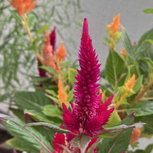ベランダのケイトウ❤️🧡🌿 去年お迎えした『小人の森の音楽会』は背丈がとっても低かったのですが、今年は種蒔きから始めて、みるみるうちに背丈が高くなって『大人の森の音楽会』になってます🎶