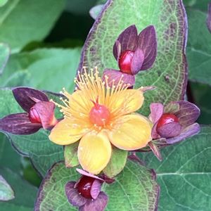 ✨今日のお花、ヒペリカム💛🌿 (˘⌣˘)♡(˘⌣˘ ) 長いシベと、ぷっくりした実も可愛い〜💕