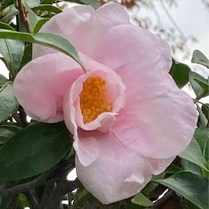 🌸今日のお花、山茶花🌸 淡いピンク、そしてクルンと巻いてる花びら、なかなかチャーミングですね💕