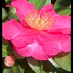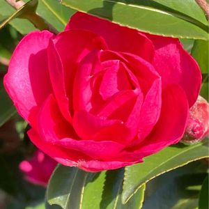 🏷 真っ赤な火曜日❤️ (*´︶`*)♡ 山茶花でも、薔薇🌹に似てるような顔立ちです…🌺🌿 山茶花には、薔薇に似た品種は色々あるそうですね… そして、山茶花は「日本の薔薇」とヨーロッパに紹介された花だとか…🌸🌿🌹 あと、大川栄作の『さざんかの宿』🎵を思い出してしまう私は古過ぎかな?(笑)