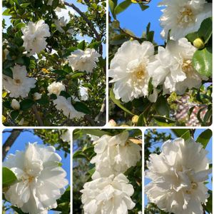 🏷白い水曜日♡ 白い八重咲きの山茶花♡ 公園の一つの木に群がって咲いていて、ニンマリとパシャリ…🤳 最近は、サザンカをよく見かけるので、名前の由来を調べてみました📖 中国語でツバキ科の木を「山茶」と言い、その花を「山茶花」と称したことに由来します🌸🌿 「山茶」と呼ばれる由来は、葉がお茶のように飲料となることから、「山に生える茶の木」の意味であります🌺🍀ですって💦 このお花の寂しい時期にも、楽しませてくれますね❗️感謝です‼️