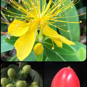 ♡今日のお花、ヒペリカム②♡ この前は、ピンクと赤い実をアップしましたが、やっぱり、咲いてるところもね🌼🍀 (灬˘╰╯˘灬)♥。・゚