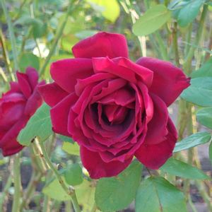 新たに迎えた薔薇ピュール🌹 耐暑性、耐病性が強く花保ちも抜群との事で花友さんオススメの薔薇で、あやせローズガーデン(11/2)で那須ヒロガーデン出張販売の時に花友さんが選んでくれた薔薇です🌹 蕾が沢山あり、充実した枝が複数あり立派な大苗です🪴 ぱっと見た目、色合いが聖火に似てますが、花弁の形と外弁は薄いクリーム色の複色で素敵な薔薇です🥰 赤いエリアに並べて見ました🪴