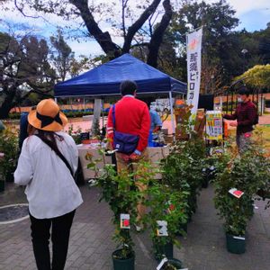 あやせローズガーデンにて🌿 11/1、2の2日間.9時〜16時迄、 那須ヒロガーデンとハイポネックスの出張販売(あやせローズガーデンに植えてある薔薇の販売)を花友さんと見に行きました🌹 種類が沢山あり過ぎて花友さんと悩みながら選んでました🥰 花友さんがお車代として好きな薔薇1鉢選んで…と言うのでお言葉に甘えて全部で3種類お持ち帰りしました🪴 花友さん有難うございます🙇 薔薇購入&インスタやアカウントをフォローしてリキダスなどをオマケ(薔薇の肥料、手袋、リキダス、ハイポネックスオリジナルエプロン&園芸作業シートなど)が沢山付いてきました🌱 しっかりした株で葉も生き生きして蕾が沢山あり咲いてる花もあるので直接色合いが見れるのが嬉しいです。 画像には写ってませんがテントの左側に薔薇苗が80鉢以上ズラリ並べてありました。 通販で購入するより、かなりお得な価格でした 2025.11.2撮影