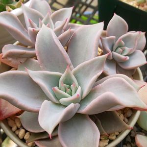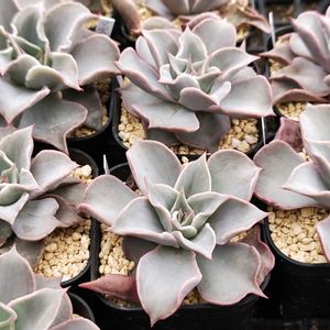 エケベリア マディバ 3年前は結構高級な子だったよねぇ 一昨年辺りから大量輸入され今は普及種並に なってしまいましたぁw それもそのはず、成長は鬼早いし葉挿しも優秀で 暑さ寒さも何のそのと強健種です🤣 カビが出やすいですがそれでも何のそので とにかく可愛いヤツなんですよぉ✨ ちなみに絶賛販売中🤣