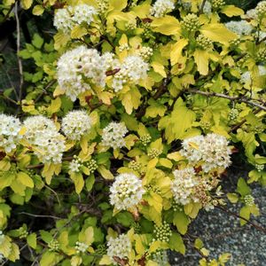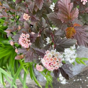 "月曜日を爽やかに" 散策路沿いの庭先。 葉っぱが銅葉で、テマリのような小さな密集した可愛い花を付けた素敵な植物に初めて出会いました。 調べると、バラ科テマリシモツケ属の落葉低木で、アメリカテマリシモツケと判明。 植物界の奥深さに感心させられました。 📷️ 2025.5.12