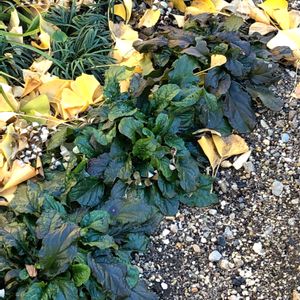ピンクの花のアジュガは丈夫です。 ブルーの花と葉がバイカラーのアジュガはちょっと弱いかな。 白花のアジュガはお亡くなりに😭 奥の方に、キンリュウカの新芽🌱が出てきました。