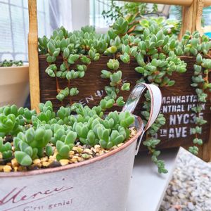今日は大雨の地域もあるとかー今の所はまだ大丈夫ですが 今朝は少しひんやりしていますが、蝉の鳴き声は前にも増して多い様な気がします〜 大合唱🎶 ↖️の上下は我が家の随分前からずっといる班入りベビーサンローズ切り戻して、またかわいい艶々の葉っぱに成長しています。 色々、分けたので皆さん元気でお花が咲いたと喜んでくれています。本当に楽ちんで増やせる多肉さんですね〜 ↗️は獣医さん近くで見かけたいい感じに垂れ下がったベビーサンローズさん 葉っぱの種類が違うので逆に新鮮な気がします🌿 後になって気づきましたが今日でGS始めて3年目に入りました〜🙌 すごく記念になるなーと嬉しいです😃