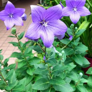 今日のお花 ~キキョウ~ です💜 キレイな彩りで咲いています💠 まるで三姉妹のよう…🎶 花茎を伸ばした先端に、 星形の花を咲かせます✡️ 開花期:6~10月 花色:淡い紫、白、淡いピンク 複色があり 清楚な雰囲気。 花姿も一重咲き~四重咲きの他、 花弁を多数重ねるものがあります💠 [ 8月のpic ]