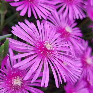 こんにちは~☀️😵💦 熱中症に気をつけて💓 ~松葉菊(デロスペルマ·クーペリー)~です💠 鮮やかな彩りで ずっと咲いています💗 開花時期が長いので暫く楽しめます🎵 💠花名の由来は、 「松葉のような葉と菊のような花姿」 💠花言葉:「怠け者」「勲功」 日の当たる時にしか咲かない という特徴に由来しています。 曇りや雨の日には、 花を閉じてしまう様子が、 怠けているように見えたのでしょうね😂