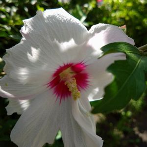 今日のお花 ~ムクゲ~ です💠 木漏れ日が差し、 キレイに咲いています💠 暑さで元気がなくなる季節に、 次々と大きな花を咲かせるムクゲは、 盛夏を彩る代表的な花木です。 アオイ科 フヨウ属 花言葉:「繊細な美」「尊敬」など