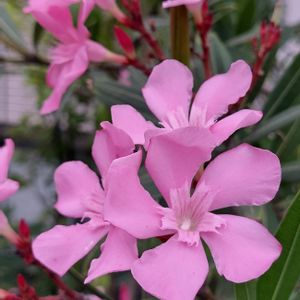 今日のお花 ~夾竹桃~ です💠 キレイな彩りで咲いています💗 常緑の中低木で、葉は厚く長楕円形、 形状は竹の葉に似ており、 6~9月に桃の花に似た花を咲かせます💠 キレイな花を咲かせるのに 全体的に有毒成分を含んでいるので、 要注意と記されています。
