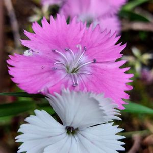 今日のお花 ~ナデシコ~ です💠 キレイな彩りで咲いています🤍💗 [ 4月下旬の pic ] 変わり咲きナデシコで、 白からピンクに色変わりします💠 耐寒性一年草ですが、 種が落ちて毎年咲いています💗