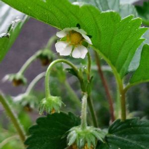 今日もお疲れさまでした😌💓 台風の被害が心配されます🌀☔ ~ハーブ ワイルドストロベリー~です🍓 今は葉っぱ🍃ばかりですが、 春から先月まで花が咲いていました💠 実も付いていましたが、 暑くなると熟す前に 干からびてしまいました💧 [ 先月上旬のpic ]