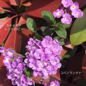 ご近所さんの庭 No.3の続き カナメモチ&コバノランタナ コバノランタナ可愛い色ですねぇ〜🥰