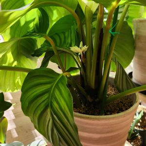 お久しぶりです! 我が家のカラテアオルビフォリア👀✨今年の酷暑がお気に召したのか……その逆か……お花を咲かせております🌼*・ カラテアは何種類か育てていますがお花咲いたのは初めてです! 同じくカラテア属のお花咲いた方いらっしゃいますか?(˶' ᵕ ' ˶)