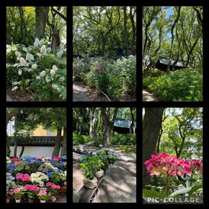 連投すみません(^人^) 全体的な風景を切り取ると こんな感じ🌿💠🌿💠 木漏れ日の下で紫陽花鑑賞 出来ました😊💕 ただ、蚊🦟が襲ってきます ので、長袖長ズボン! 虫除け対策は必須です❣️ 筥崎宮のあじさい祭り💠 6/8❇️