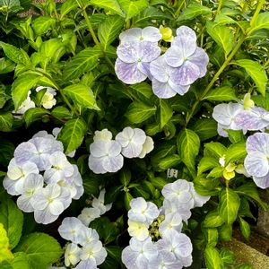 連投失礼します。 常山あじさい 碧のひとみ 21 前から欲しかった子ですが、園芸店のセールで出会いが🤩お迎えしちゃいました。 星のような花が中々開かない💦 葉っぱに白い粉沢山つくのは、なんでだろう❓🤔