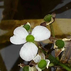 オモダカの仲間でも、花は小さめです。葉は切れ込まないのが特徴です。