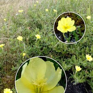 コマツヨイグサ 今日の花 地に這うように咲く。 月の光のような花。 100円玉程の大きさ 記録用 2022/0604