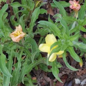 今年春くらいから、突然 裏のガーデニング畑一面に 咲きはじめ、今だに 毎日咲いています。 黄色とだいだい色の花が、 夕方から、早朝にかけて、まるで、高山植物みたいな眺めになるので、 雑草だけど、 そのまま楽しんでいます。 昼間は 花は萎んでいます。 花の名前がわかりませんので、知りたいです。