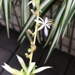 「オリヅルラン(折鶴蘭)」 この冬に一度は枯れてしまっていたオリヅルランが復活、花が咲いた✨💕