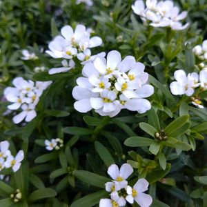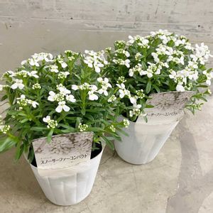 ❁. 。イベリス スノーサーファーコンパクトホワイト’。.❁ ・ ・ ・ 大きな純白の花が美しい イベリス スノーサーファー コンパクトホワイト🌨️🤍 スノーサーファーコンパクトは 通常のイベリスよりも1つ1つの花が大きく、 たくさんの花を咲かせてくれる、 非常に見応えのある品種になっております👀☃️ 寒さにとっても強いのでお庭の グランドカバーにピッタリ!⛲️🪴 ですが、1株で充分こんもり咲いてくれるので、 鉢植えにして楽しむことも出来てしまう、 まさに一石二鳥のお花です🪷🤍 見た目も可愛らしく、 耐寒性もバッチリなイベリス スノーサーファーコンパクトホワイト、 是非チェックしてください📝🦢 *育て方* 低温期間(冬、秋)は日当たり、水はけの良い場所で少し乾き気味に☀️ 冠水時はたっぷりと水をあげて下さい🚿 夏場は直射日光を避け、風通しの良い場所で管理しましょう🌬️