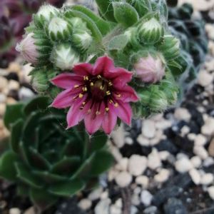 縦に伸びたセンペルビウム…花が咲きました😁 はじめまして~のセンペルビウムの花 多肉はやっぱり不思議ちゃん👾