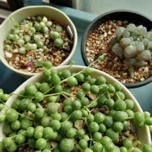 瀕死の状態からの復活の グリーンネックレス と 30円にて保護した斑入りグリネ こちらも復活の兆し がんばれー💪