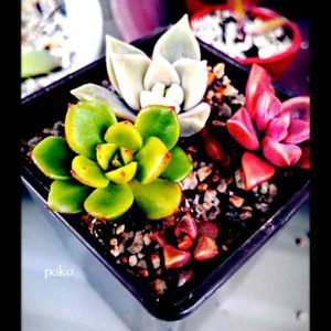 ここの所続く雨の日々が始まる頃にはもう一回り大きく美しかったこの春の新入りセンペルビウムの【ラドム】と【ソポト】。 ウッカリ長雨(しかも豪雨)に晒してグルッと下の方がジュレてしまいました…。😱 にも関わらずソポトさん、花穂が上がってたのをカットして挿した物が開花😍 開き加減は今ひとつだけど、白にラベンダーピンクのかわゆいお花💖 下葉の処理して軒下に移動。 このまま回復して下され〜😣 7号サイズの鉢なので、ジュレ葉を毟るまでは10cmは確実に超えていたのさ。 油断した…。
