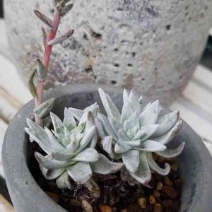 100均の チビコンクリート鉢に植えた子を すっかり放置してしまった😣 逞しく育ってね😊?