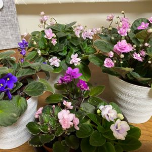 はじめてセントポーリアさんを枯らさず育てられました。 鉢から溢れて2倍の大きさ そして花色が増えた⁈ 隣の鉢と受粉したのかしら 何十年も前はすぐ😇だったのに… 暖かい南のリビングにお引越ししています