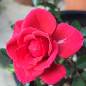 先日、ビオラを購入した時に 枯れかけているミニバラ🌹2鉢保護😅 1鉢100円🌱 タグにはモスクワフォーエバーとある。 赤い花が咲きました。 もう1個は何色が咲くかな〜🤔 黄色だとうれしいなぁ😊