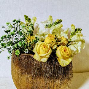 作品展終了しました。 たくさんの方に来ていただきました。 40点あまりの華やかな作品が展示されました。 私の作品は華やかさとは無縁ですが、ほぼイメージ通りに仕上げました。一方で色々難しさも感じました。教室を通してだとあまりに早く花材を注文しなければならず、発注ミスもあり、半分くらい余って無駄にすることに。高くても自分で手配した方が納得できるな。 良い経験になりました。