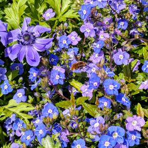 朝は寒かったのに、暑くなって〜🎶 珍しく🐝蜂さんとコラボできました💓 🩵ブルーなアネモネ💙🩵💙とベロニカオックスフォードブルー ブルーは、私の精神安定剤💕(๑˙❥˙๑)🤗