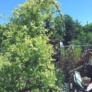 アーチのハニーサックル😊 咲き出しました😆 数年前に北海道の風のガーデンで見て 次女とハイテンションままお迎えしたコ(笑) 可愛い😍