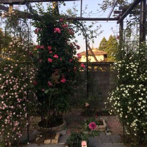 おはようございます。 やっと薔薇のアーチの遅咲きニュードーンも咲だし薔薇の見ごろに🌹☺️