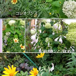 我が家の小さな庭の右と左🌼 並んでしか歩けない我家の庭 だけど楽しんでます(。・ω・。)ノ♡ 小さな花が咲きだしました✿❀