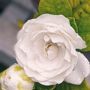 🎼雨☔上がりの庭でくちなしの香りの やさしさに包まれたならきっと 目👁️👁️に映るすべてのことはメッセージ🎵 「やさしさに包まれたなら」魔女の宅急便で出会った方も多いでしょうね😉 我が庭のクチナシはまだまだです。 このお花はうちの子達のお母さん🥰