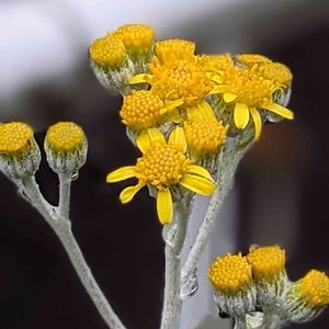 寄植えの中のシロタエギク お花が咲きました‼️ ハキダメギクと似ています😅 🏷木曜モフモフ