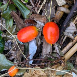 まだ辛うじて残っている藪の様な場所 散歩していたら、赤い実が目を引きました カラスウリでした 若い実は縞々模様なんですね〜🤩 🏷️日曜ビタミンカラー♪