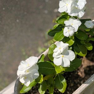 1️⃣2️⃣こぼれ種から咲いた最初は10センチ位の小さな日々草 今も背丈はそれほど高くないけれど、花径が5センチ超えの花をぐるりと付けています。1本の茎のどこにこんな力を蓄えているのでしょうか⁉️ 3️⃣4️⃣5️⃣ 雨粒をまとった日々草 🏷️水滴の水曜日