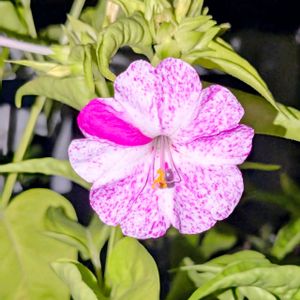 オシロイバナ日記VOL13 1️⃣㊗️遂に別のプランターの一株のオシロイバナ開花💮しました😆🎊 金曜日つぼみをアップする予定だったのに💦 昨日には咲いていました 庭パトが遅れ🕔️過ぎに確認💦 こちらも絞りが多そうです 2️⃣以降は最初から咲いているプランターの花です