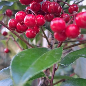 今日のお花のマンリョウ 昨年までは140cm程のノッポマンリョウがありました ノッポだった分目立ち、随分野鳥のお食事処🍴🐦🍴のようでした その傍で育ったこのマンリョウは、背が低い分野鳥に気付かれず 艶々の実🔴が健在です このマンリョウもノッポになりそうです