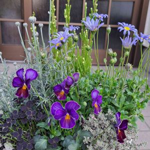 おはようございます😊☀ 素敵な寄せ植えを頂きました🤗 私好みの💜💙系です🤗 自分では上手く選べず 寄せ植えは苦手です 暫く観て楽しみ 育てて楽しみ···· と楽しみが続きそうです🥰