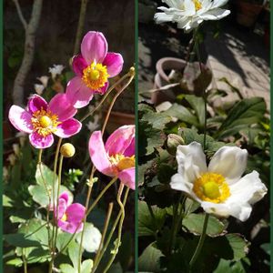 今日のお花の秋明菊です🥰 今、狭い庭に咲いています😉 白は八重咲きなのですが 一重にもなり咲いています🤗 ピンクはひと足先に咲き、もう終盤です🥴 その後ろの白花ホトトギスも そろそろ終盤・・・ 霜降の時季らしく 晩秋のお花に入れ替わります