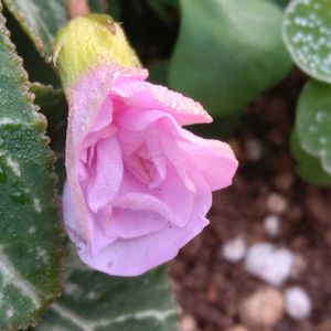 八重咲きおきざりすポンポン🩷 少し開きかけてきました🩷 霜が降りて葉が綺麗🌱✨ 花は可愛そう(*´`) 🏷しあわせ運べるように 🏷花咲く乙女たち♡