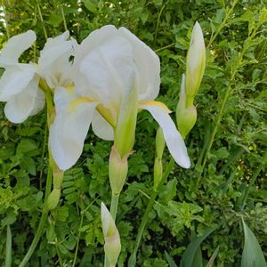 ジャーマンアイリス🤍 畑でいつの間にか咲いてました🤍 🏷白い水曜日♡ 🏷白い貴婦人✨ 🏷しあわせ運べるように 🏷花咲く乙女たち♡